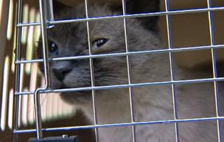 A professional tree trimmer with a bucket truck showed up Tuesday morning to rescue the high-climbing feline.